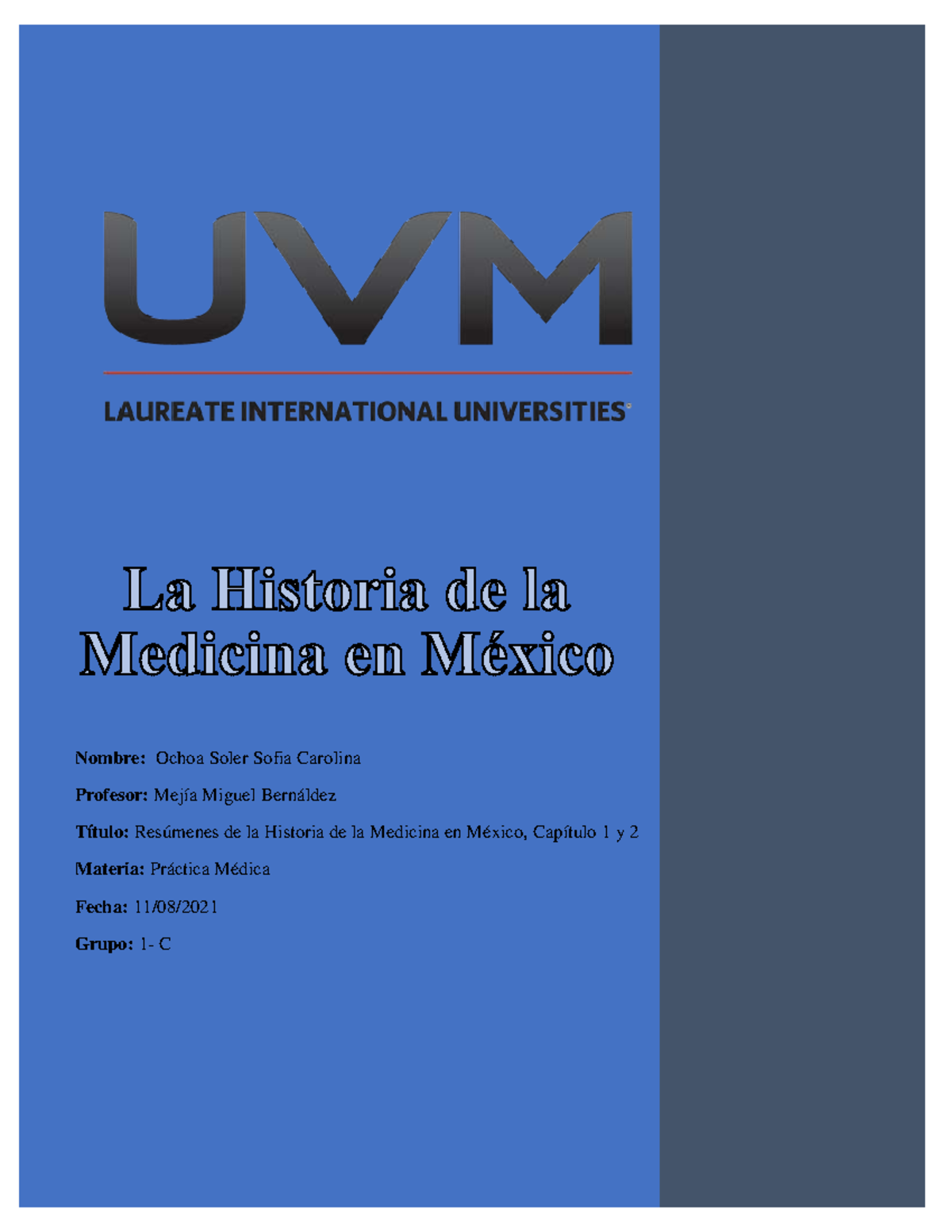 Apuntes DE LA Historia DE LA Medicina EN México (1y 2) Nombre Ochoa Soler Sofia Carolina