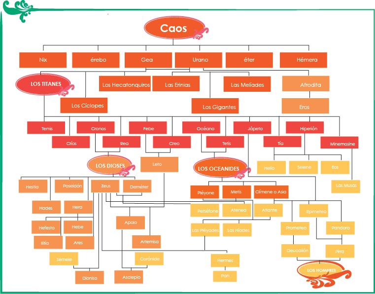 Creative Mindly Árbol genealógico los dioses griegos