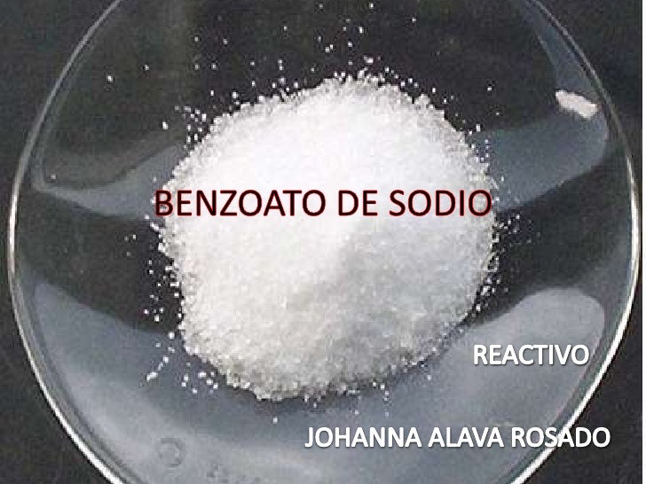El benzoato de sodio es una sal orgánica cuya fórmula química es C6H5COONa. Se produce o genera mediante la reacción de neutralización entre el ácido benzoico y el hidróxido de sodio. El resultado es un sólido blanco soluble en el agua, que se descompone por calentamiento a 120 °C. Esta sal puede encontrarse naturalmente en varias.