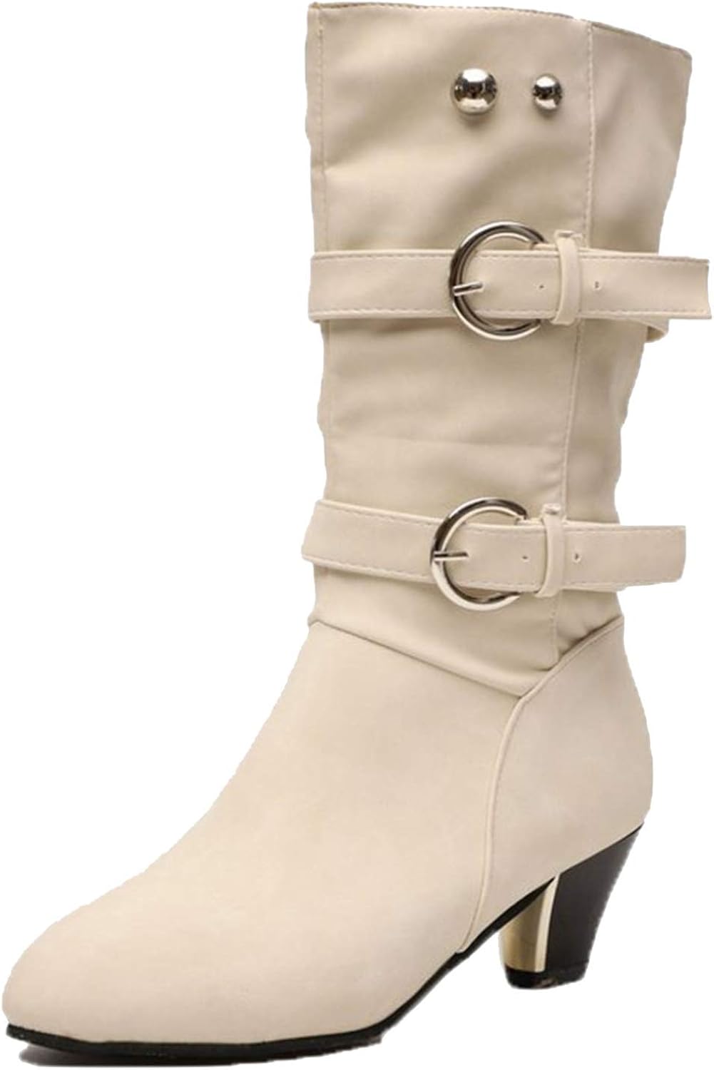 Botas a Media Pierna para Mujer Plataforma de Invierno Punta Redonda tacón Cuadrado Zapatos