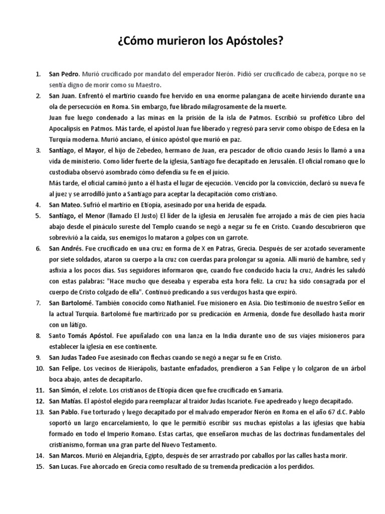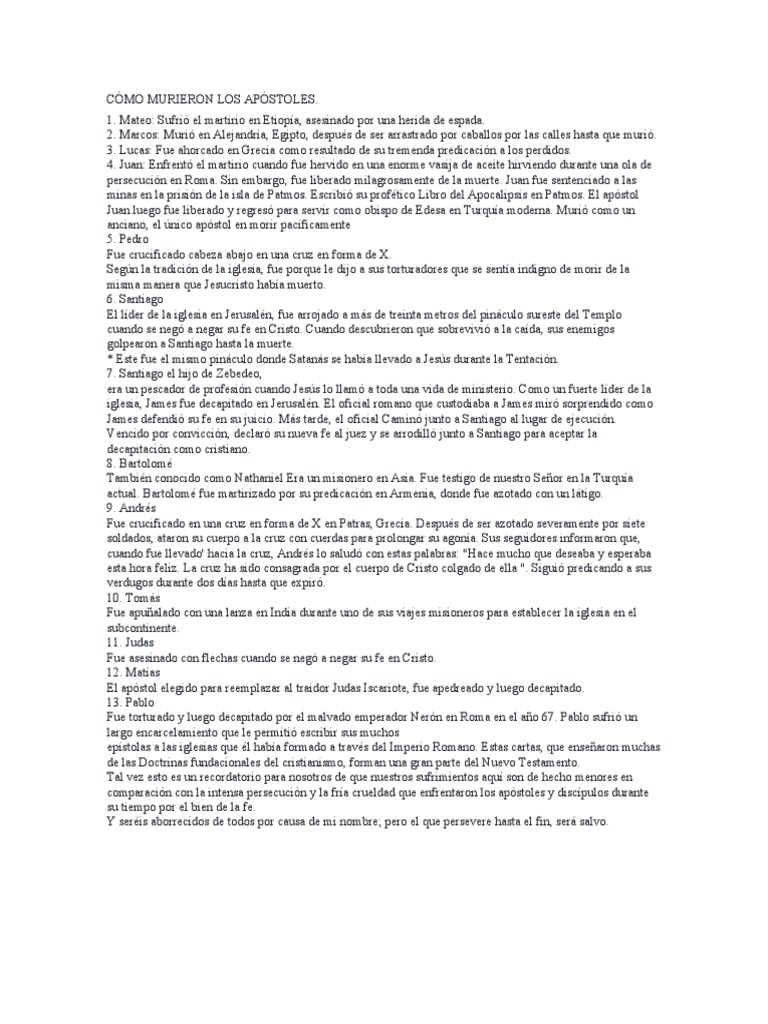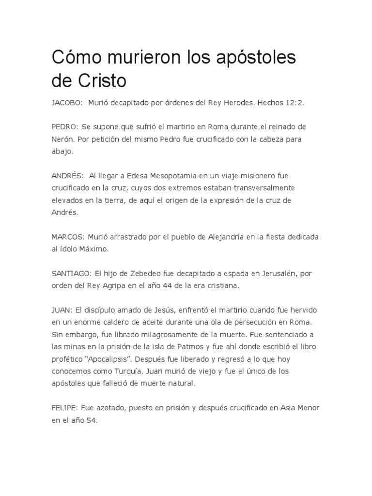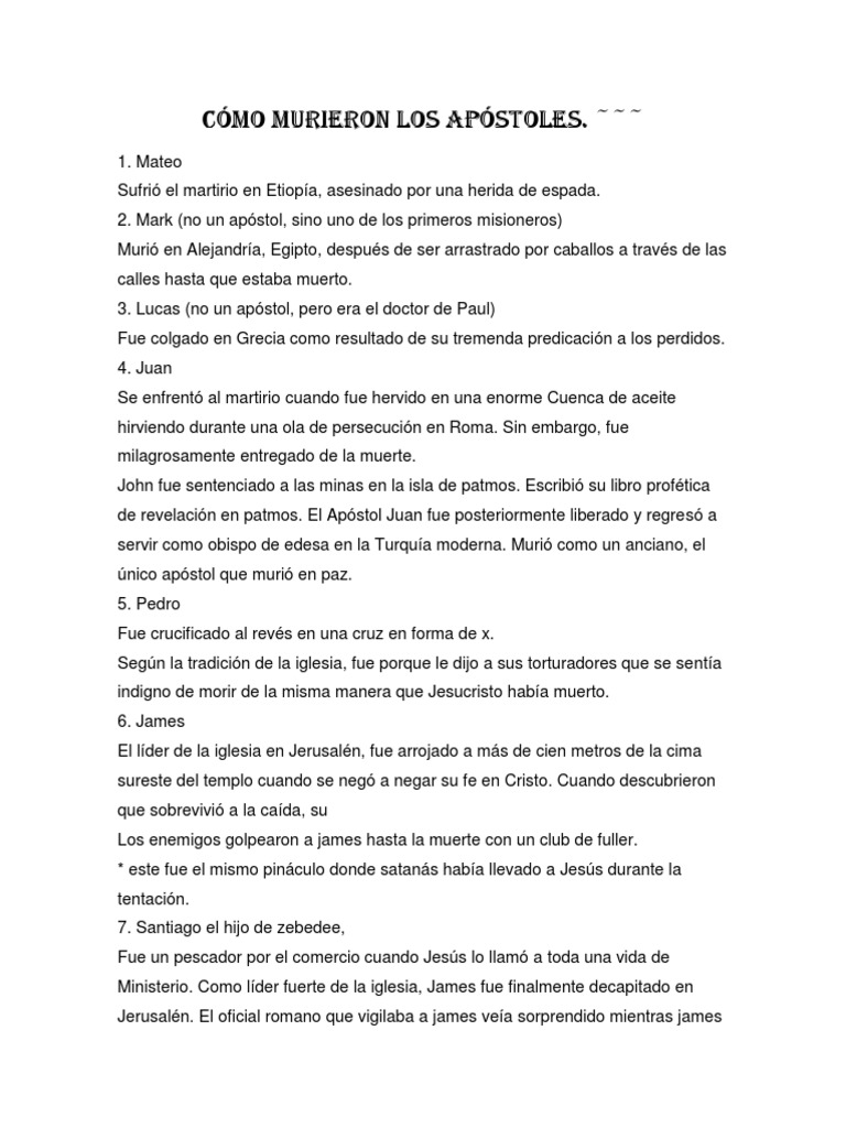 Cómo Murieron Los Apóstoles | PDF | Muerte | Jesús. Scribd es red social de lectura y publicación más importante del mundo.