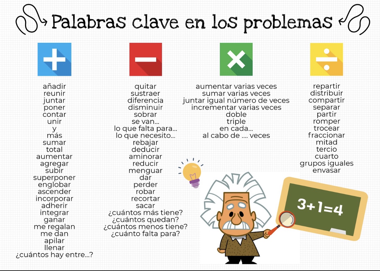 En este artículo, te mostraremos las principales palabras clave para resolver problemas matemáticos y algunos ejemplos resueltos. Conociendo el significado de cada término clave podrás resolver los problemas muy rápidamente, puesto que sabrás identificar la operación que tendrás que hacer en cada momento.