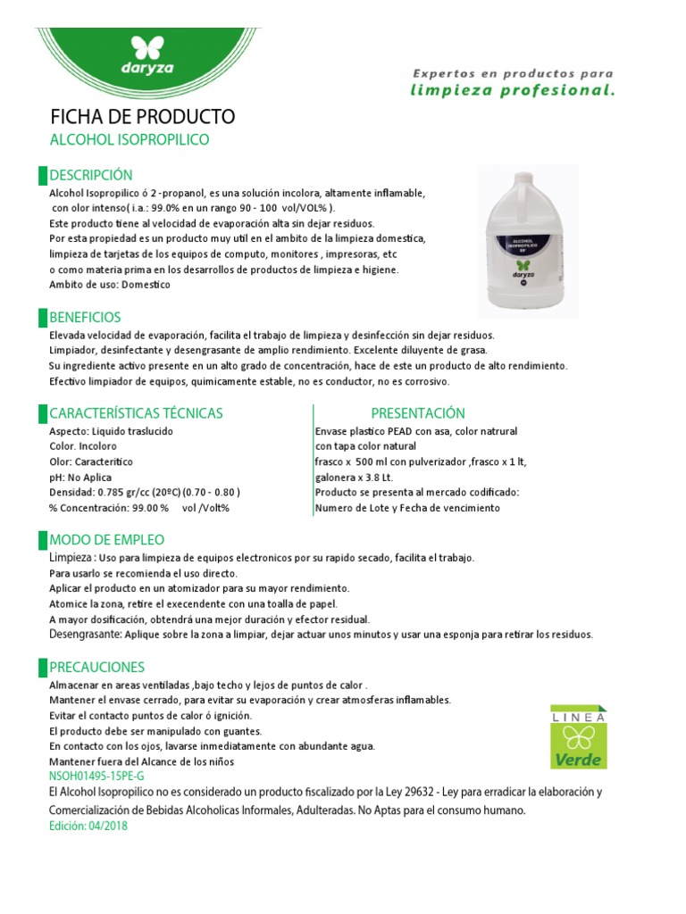 Ficha Tecnica Alcohol Isopropilico Daryza PDF Química
