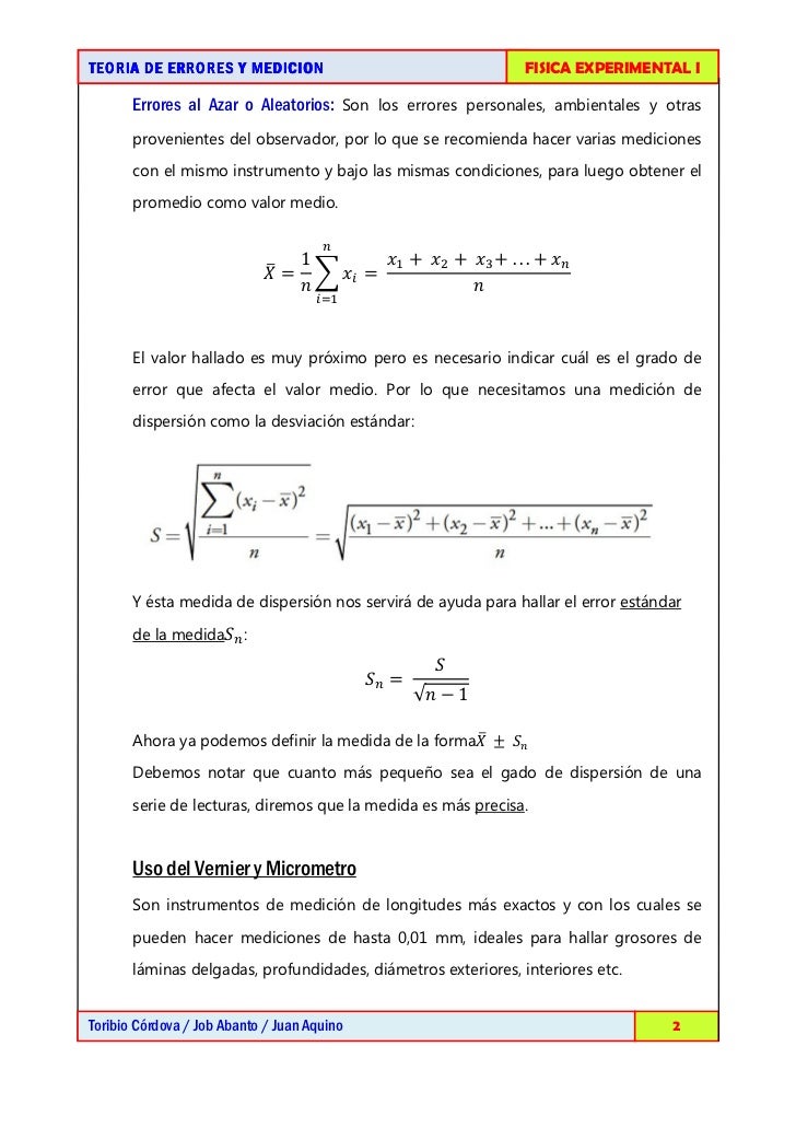 Fórmulas de Teoría de Errores. En esta parte podrás descargar gratis un formulario de Teoría de Errores, que contiene un resumen de los conceptos mas importantes de este tema, ademas de las formulas mas importantes que te servirán de ayuda para resolver los ejercicios de teoría de errores y los rescontraras en formatos PDF y DOC.