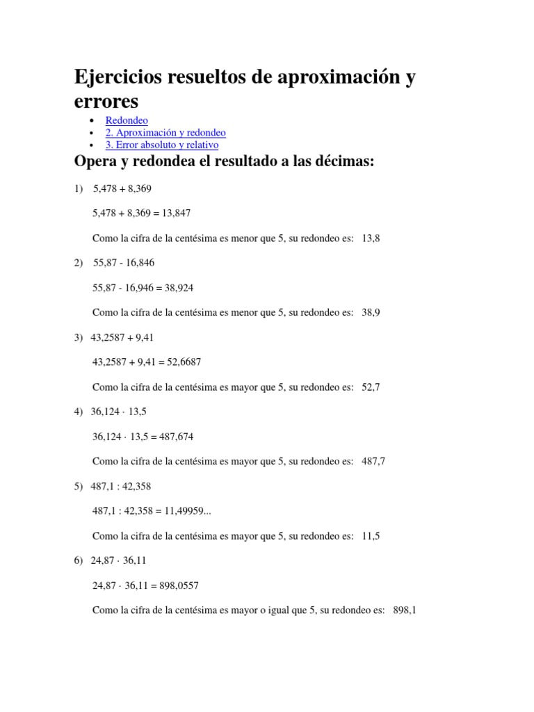 Ejercicios Resueltos de Aproximación y Errores PDF