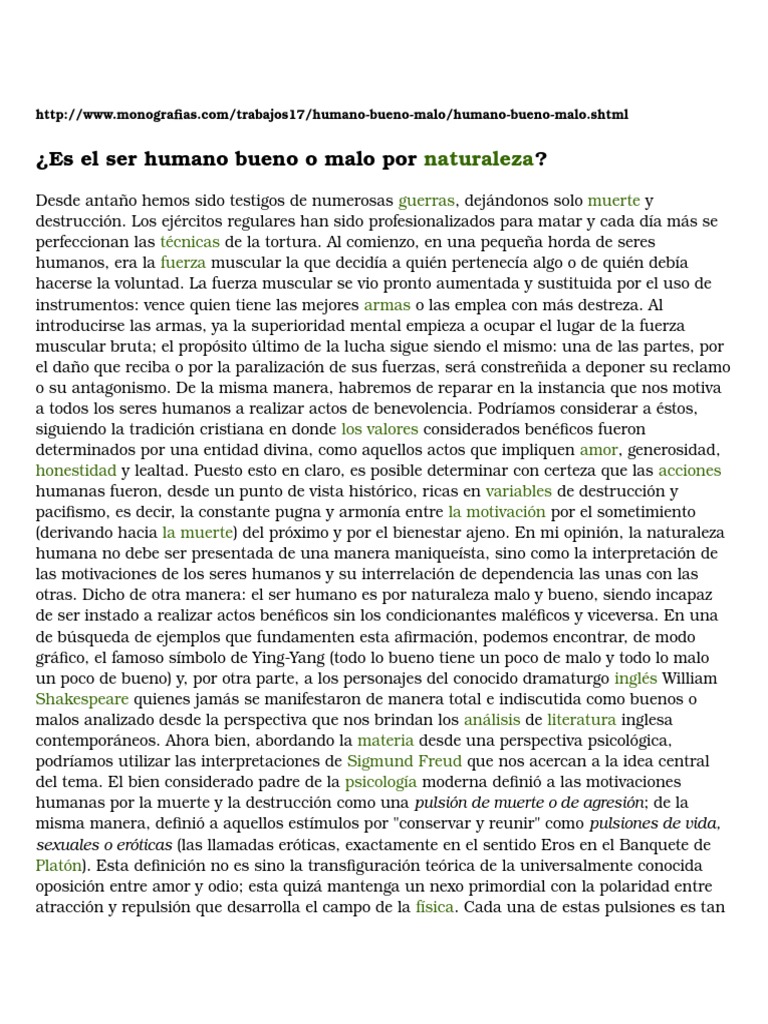 El Hombre Es Bueno Por Naturaleza Ensayo PDF Moralidad Mal
