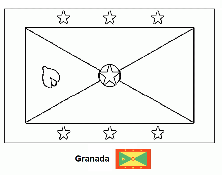 Colorear Granada. Grenad. Grenade (Banderas de paises), dibujo para colorear gratis
