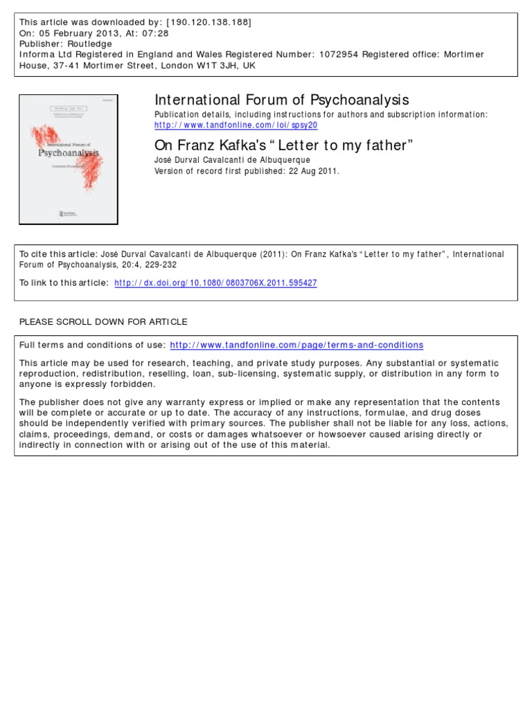 On Franz Kafka S Letter To My Father PDF PDF Sigmund Freud Franz Kafka