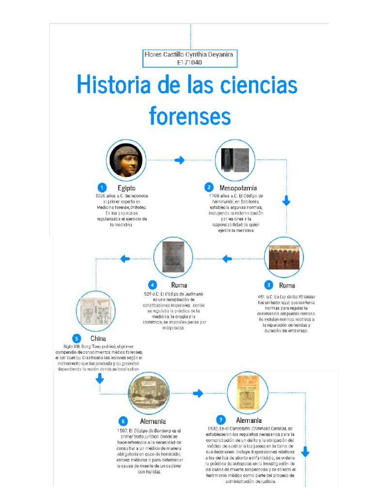 Capitulos: Criminalistica, Medicina forense, Muerte, Grafologia, Genetica Forense, Linguistica forense, Historia de la medicina legal en Venezuela, Huella dactilar, Federico Vattuone, Juan Vucetich, Psicologia forense, Podologia forense, Alphonse Bertillon, Autopsia, Computo forense, Edmond Locard, Mateo Orfila, Francois Naville, Prueba de.
