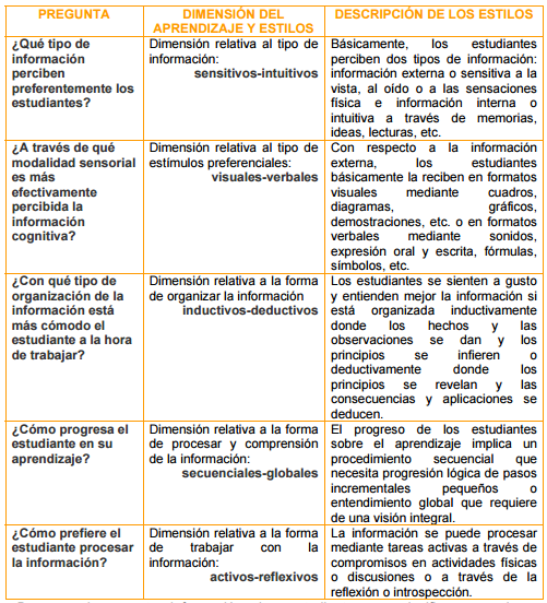 conoce como el Modelo de Felder -Silverman, y fue creado para uso de los profesores universitarios y estudiantes de ingeniería, aunque posteriormente se . Vol. 8 No. 16 Journal of Learning Styles Revista de Estilos de Aprendizaje Revista de Estilos de Aprendizagem ISSN: 2232-8533 106