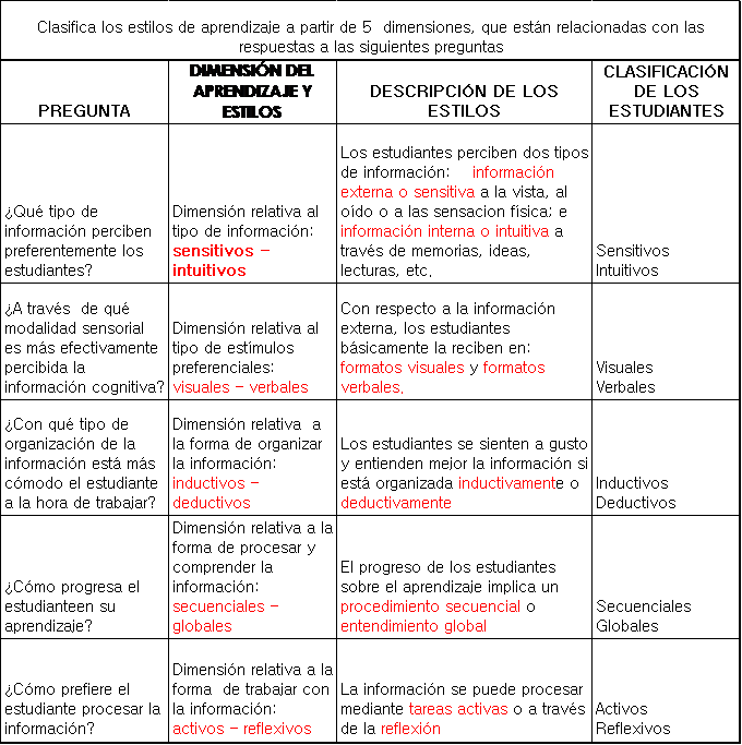 Estilos de aprendizaje de Felder y Silverman teoría 2) Modelo de estilos de aprendizaje de