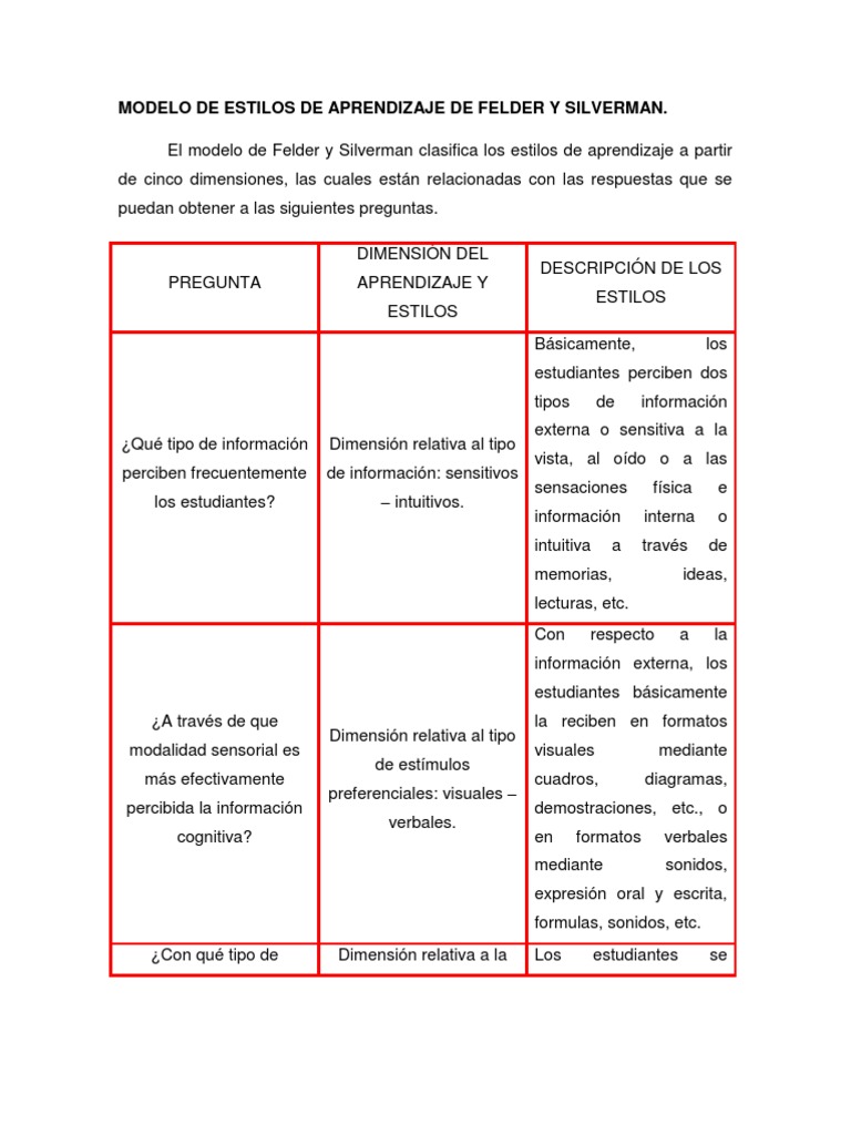 Total 80+ imagen modelo de felder y silverman actividades Abzlocal.mx