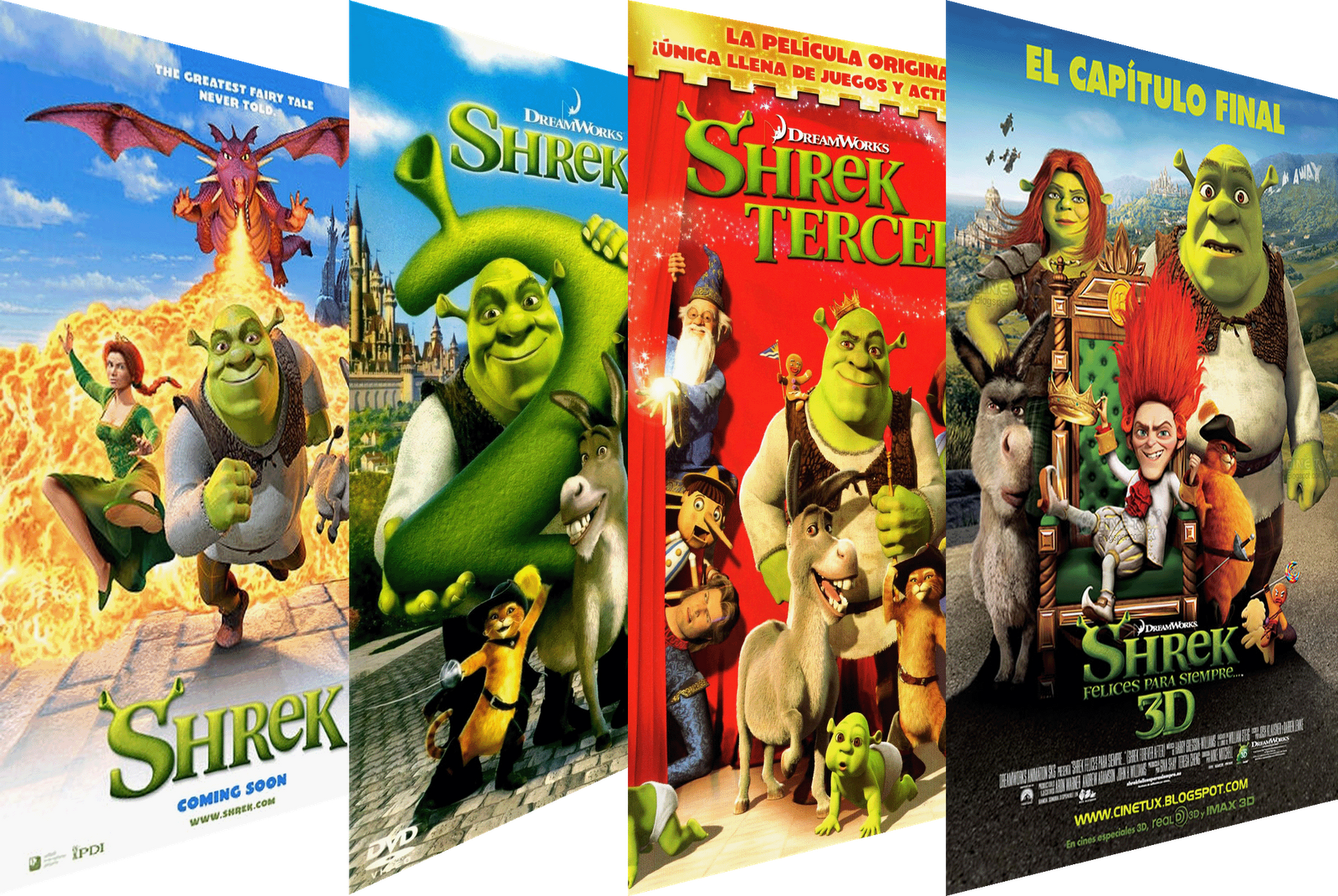 Saga Shrek. La franquicia Shrek, basada en el libro Shrek! del estadounidense William Steig, está conformada principalmente de una serie de cuatro películas de animación: 'Shrek' (2001), 'Shrek.