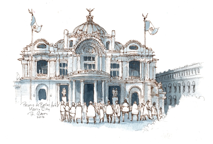 Croquis DF Palacio de Bellas Artes Fotografía paisaje urbano, Paisaje de fantasía, Simbologia