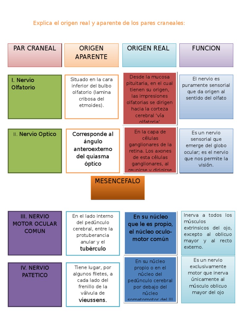 Repaso pares craneales Anatomía Cuadro sinóptico uDocz