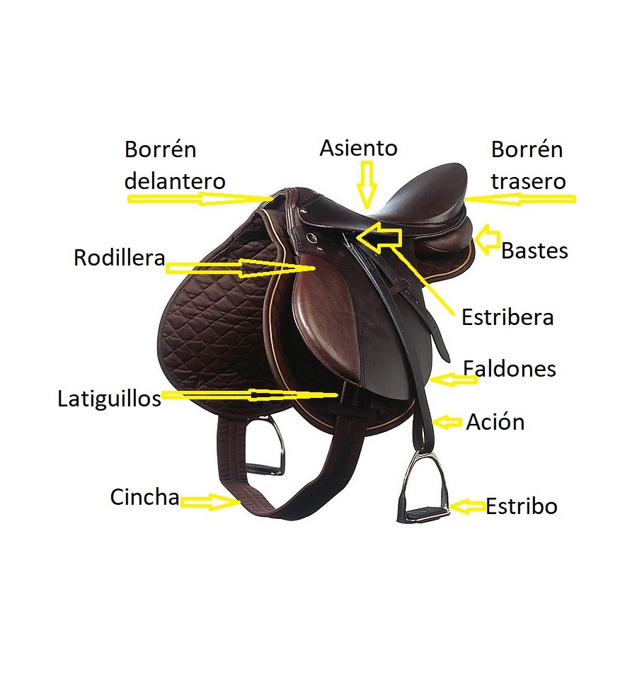 Partes de la montura para caballo. A continuación te contamos cuáles son las partes de una silla para montar, para qué tengas claro a qué se refieren en la hípica cuando hablan de este tema: Armadura. Como su nombre indica, es el armazón sobre el que se construye la silla, el esqueleto de la misma.