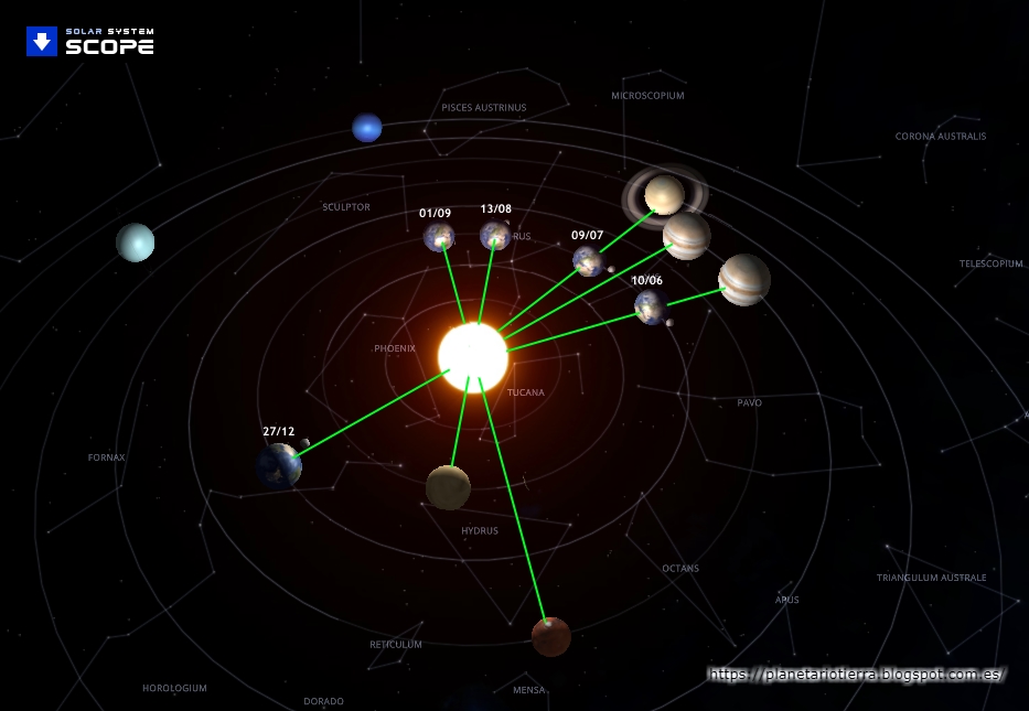 Tierra Alineaciones y oposiciones de los cuatro visibles con la Tierra en