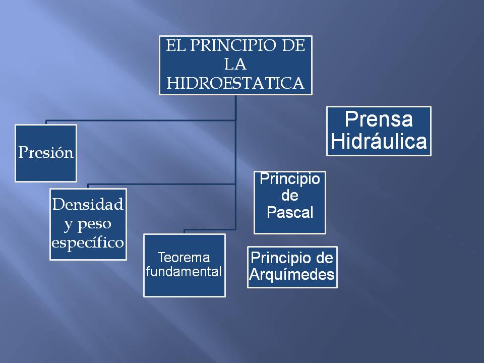 El principio fundamental de la hidrostática afirma que la presión de un cuerpo en el interior de un fluido es directamente proporcional a la profundidad en la que se encuentre y a la densidad del fluido. Beta. Descubre el principio de la hidrostática en Física y Química con evulpo. Aprende qué determina la presión en un líquido y el.