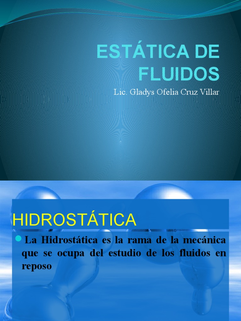 La hidrostática es la rama de la mecánica de fluidos que estudia los fluidos en estado de reposo; es decir, sin que existan fuerzas que alteren su movimiento o posición. Su contrapartida es la hidrodinámica , que estudia los fluidos en movimiento. Reciben el nombre de fluidos aquellos cuerpos que tienen la propiedad de adaptarse a la forma.