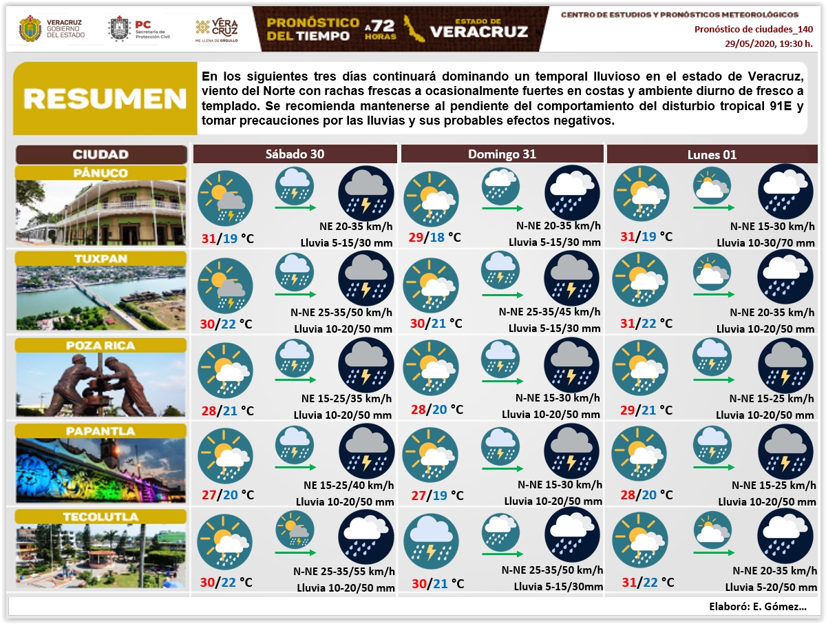 Secretaria de Protección Civil Veracruz Meteorología. Pronóstico del tiempo a 72 horas, 29
