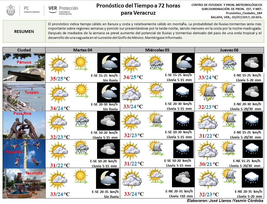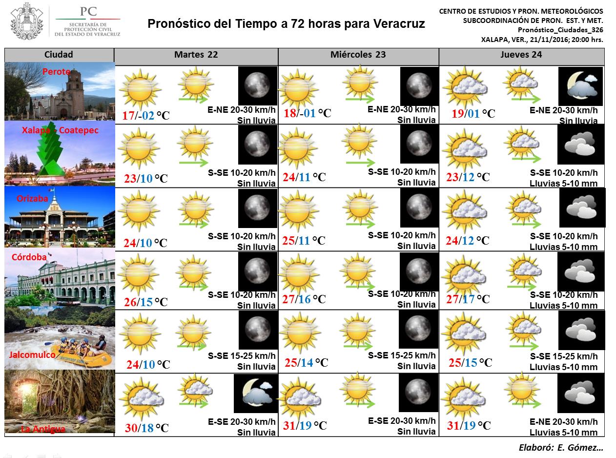 Secretaria de Protección Civil Veracruz Meteorología. Pronóstico del tiempo a 72 horas, 30