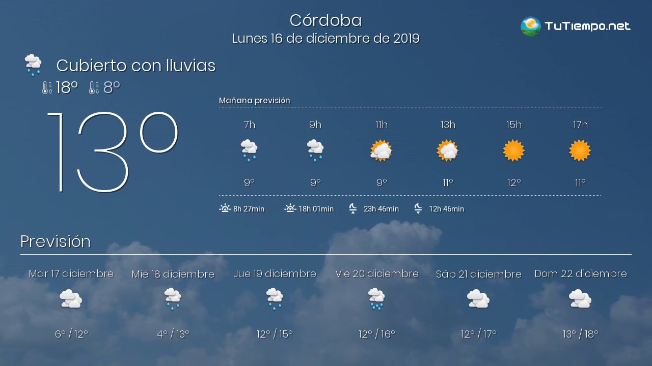 El tiempo en Córdoba. Lunes 16 de diciembre de 2019. YouTube