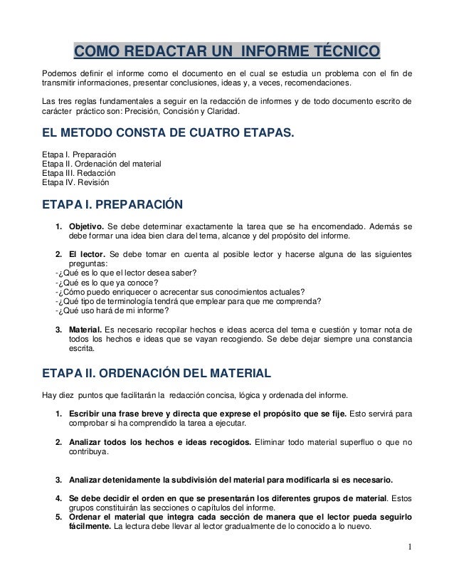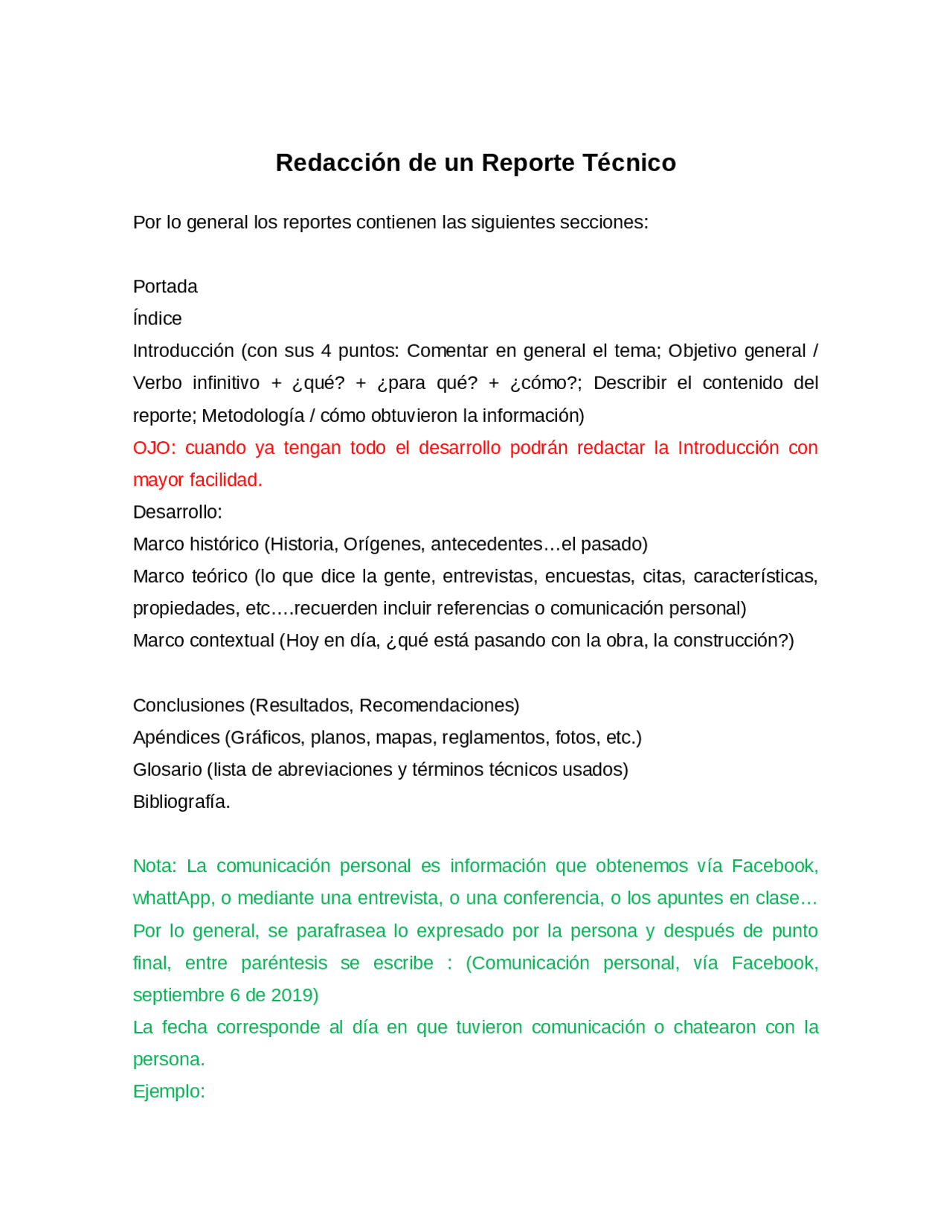 REDACTAR UN REPORTE TÉCNICO Docsity
