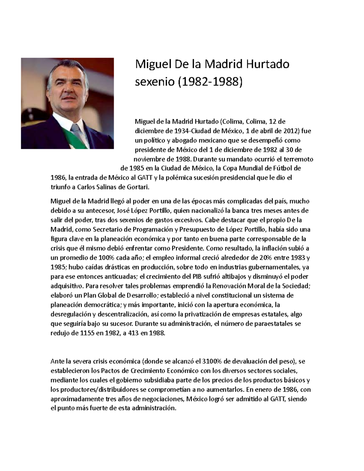 Tarea mexico kZNDÑFLG Miguel De la Madrid Hurtado sexenio (19821988) Miguel de la Madrid