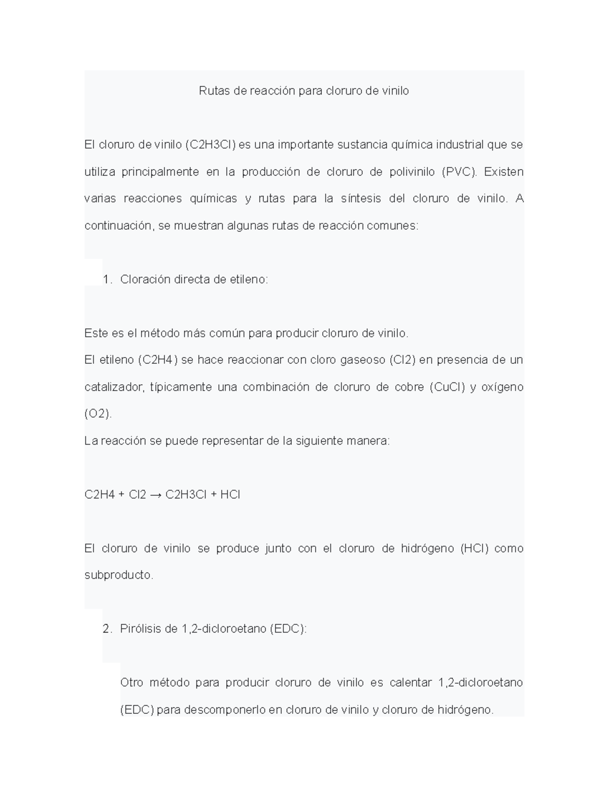 Rutas de reacción para cloruro de vinilo Rutas de reacción para cloruro de vinilo El cloruro