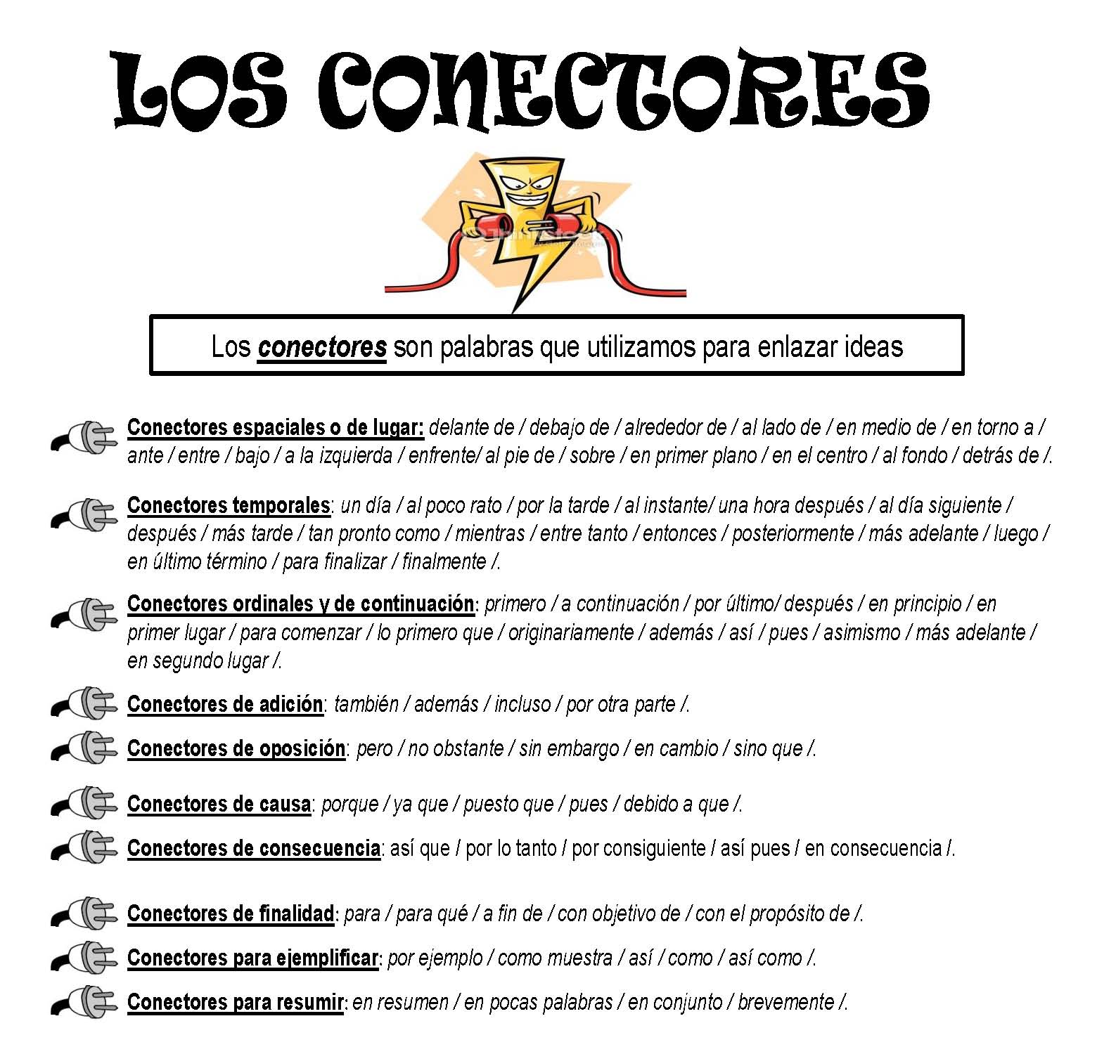 Conectores de tiempo; Conectores de tiempo. Ejemplos y ejercicios. Los conectores o nexos nos facilitan la organización de ideas dentro de las oraciones del texto o discurso de manera que permiten establecer una relación entre enunciados u oraciones.. De esta manera, en el caso de los períodos, éstos sirven para que el narrador pueda expresar de manera correcta y coherente su ubicación en.