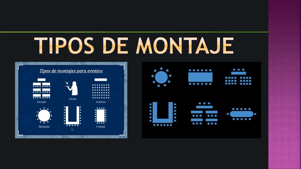 Tipos de montaje - Conoce 7 distintos montajes para tus eventos. Inicio.