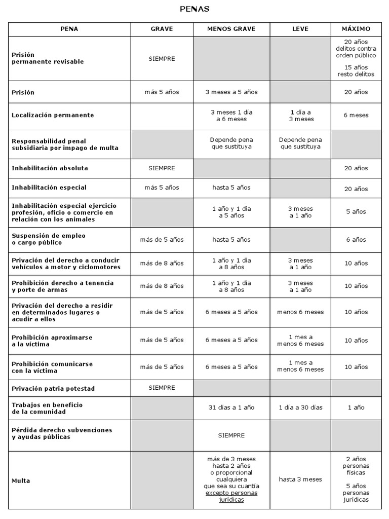 La clasificación de las penas en el Código Penal ¡PDF Descargable! OpositaTest Blog