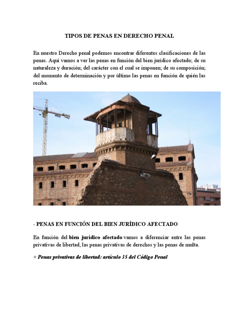 Tipos de Penas en Derecho Penal PDF Castigos Derecho penal